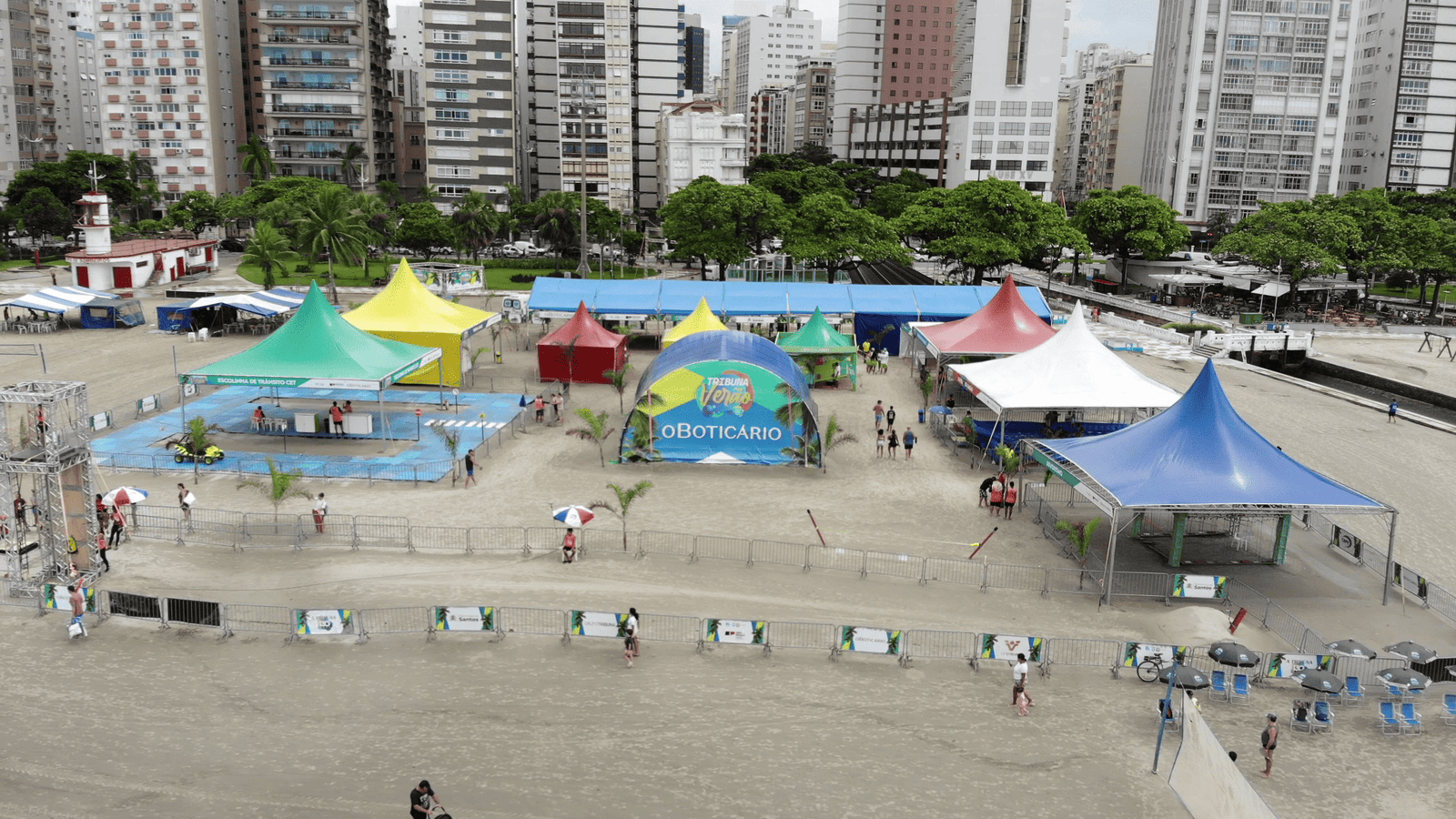 A estrutura completa da CAPE Eventos realizou eventos simultâneos na orla da praia de Santos no verão 2024: o grande palco de shows de aniversário